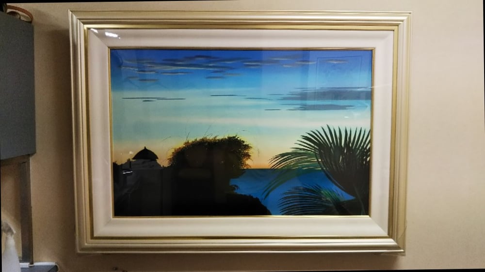 こちらも南国の暮れなずむ情景を描いた1枚。